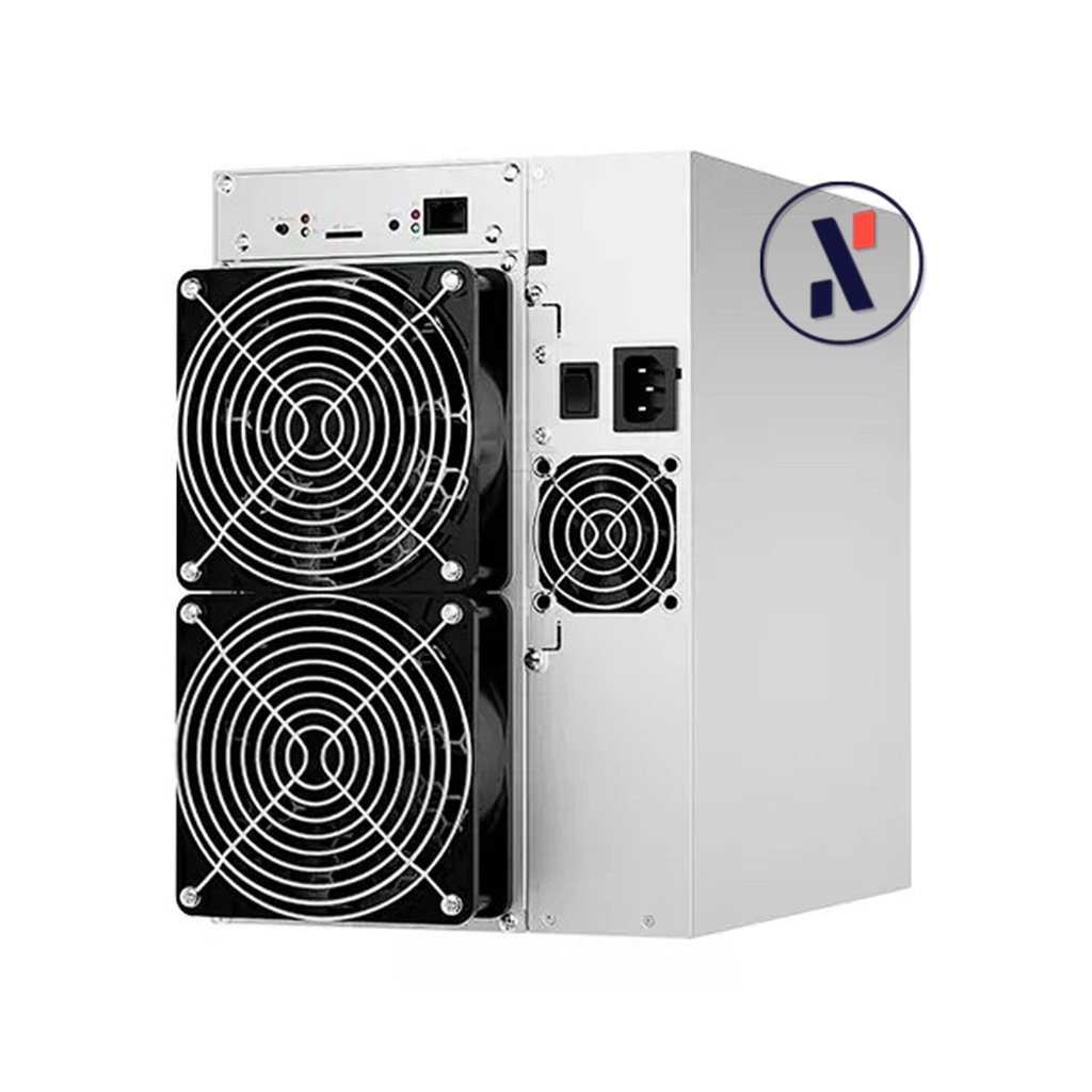 Těžební stroj, známý jako ASIC miner, je navržený pro maximální efektivitu a výkon. O spolehlivé chlazení se starají dva ventilátory na přední straně, které nasávají studený vzduch, a dva ventilátory na zadní straně, které odvádějí horký vzduch ven.